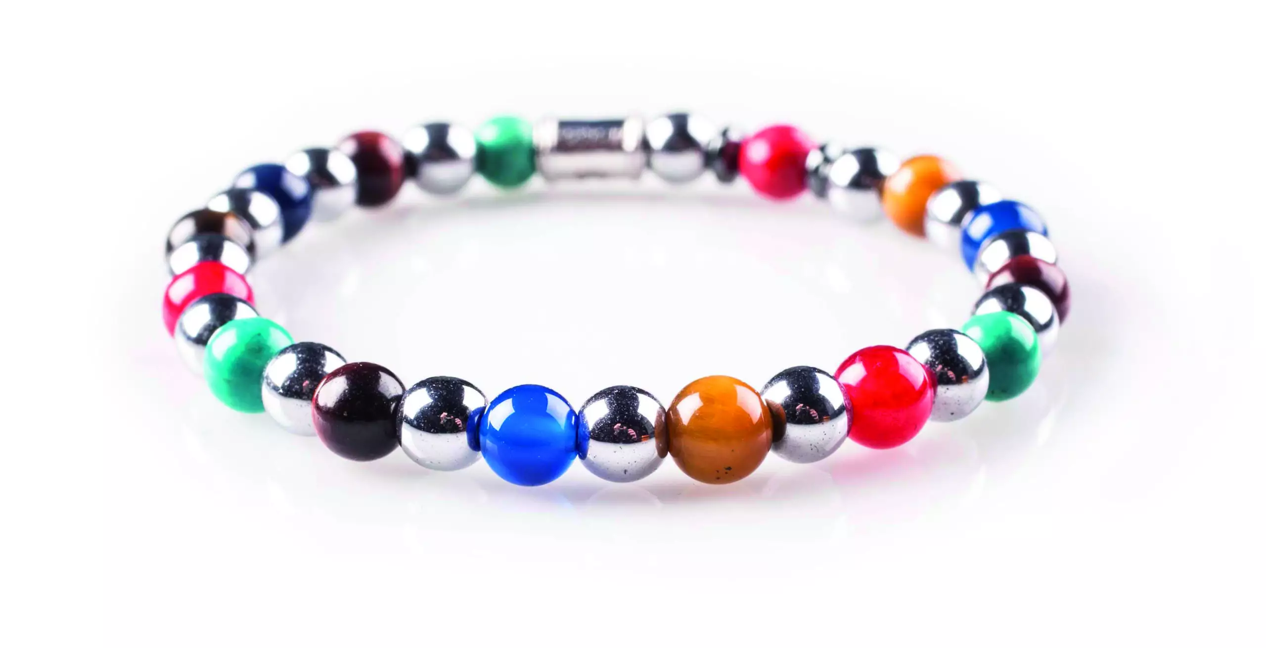 The bracelet beads are made with semi-precious stones.