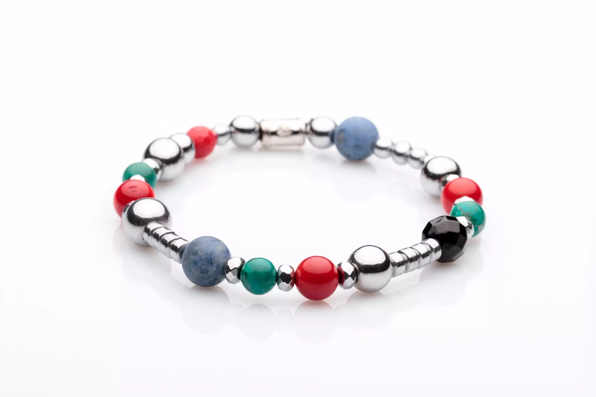 The bracelet beads are made with semi-precious stones.